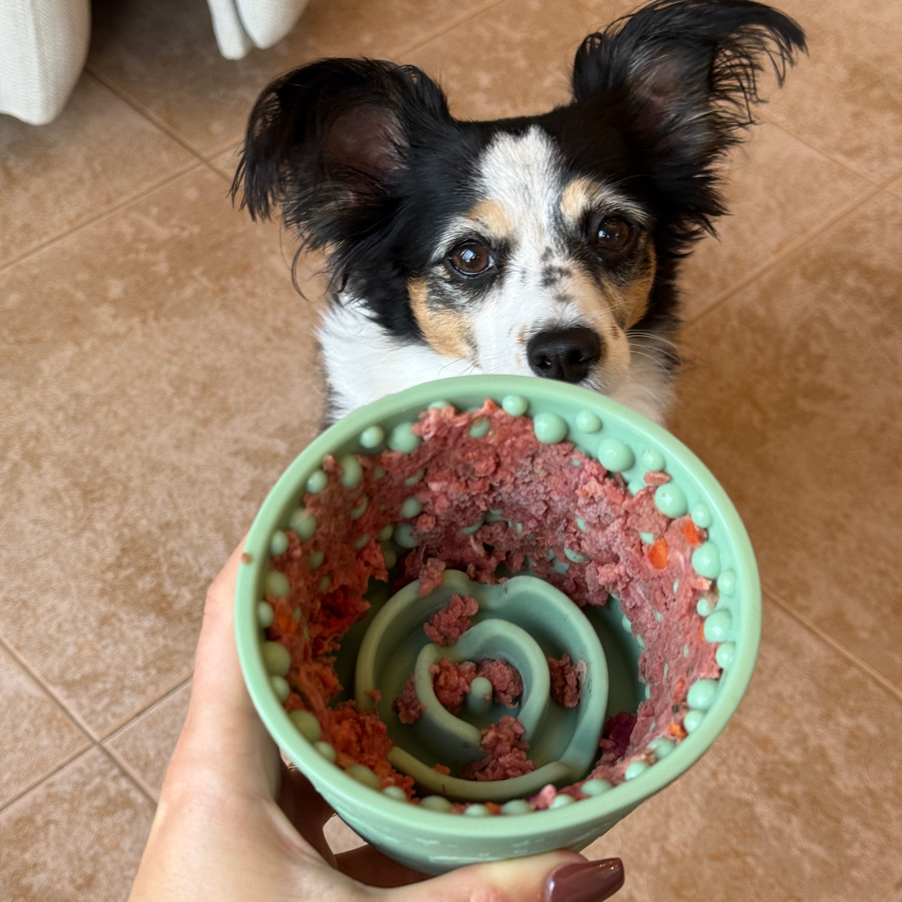 Der CheeryCup ist der perfekte Begleiter für entspannte Schleckmomente. Ob als Anti-Stress-Hilfe, Beruhigung beim Alleinsein oder einfach als gesunde Beschäftigung – dieser liebevoll designte Leckbecher bringt Ruhe in den Alltag deines Hundes.
